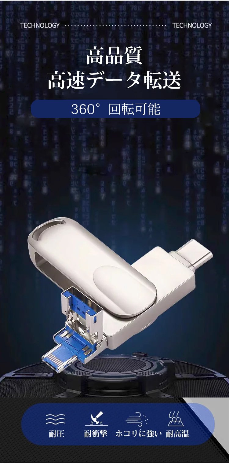 メモリクリーン不要で、スマートフォンもスムーズ!1000G!iPhone、type-C、Android、USB!高速転送、高い機密性、防水・防腐・耐衝撃!【5480円 2点目2200円】数量限定、すぐに元の価格に戻ります!